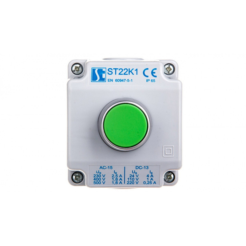 Kaseta sterownicza 1-otworowa zielony 1Z szara IP65 2x dławnica M20 szara ST22K1\01-2