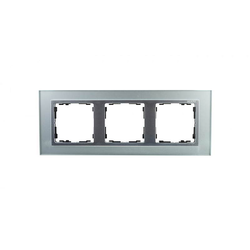Simon 82 Ramka potrójna pozioma szklana srebro/ ramka pośrednia aluminium mat 82937-62