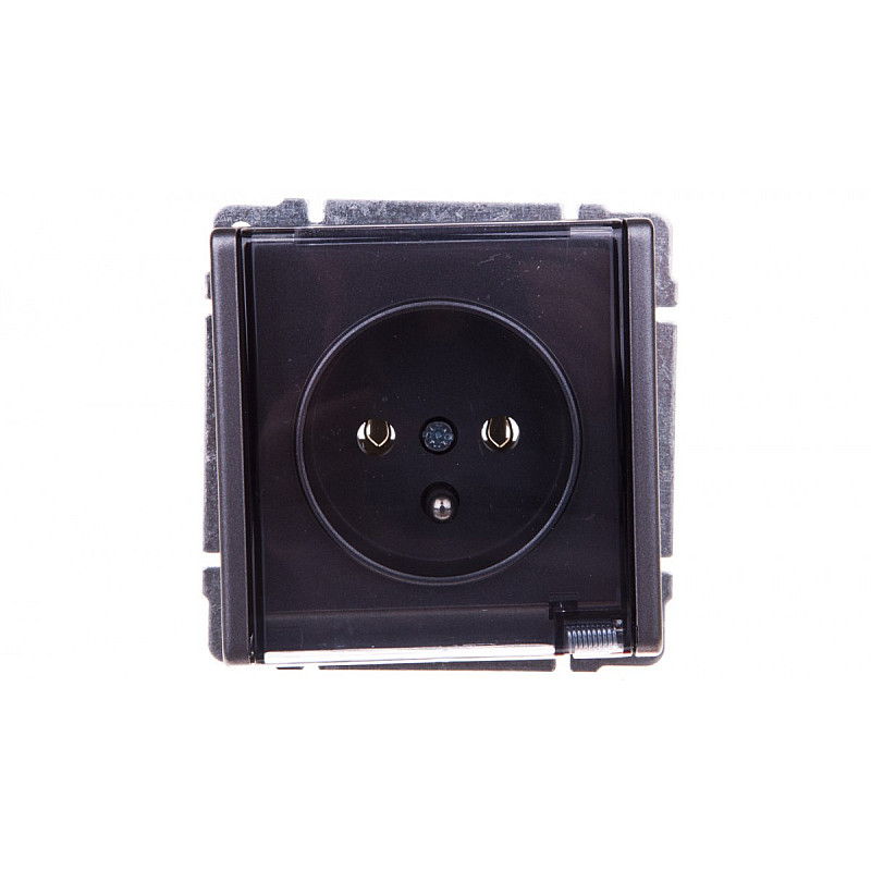 KOS66 Gniazdo bryzgoszczelne z/u IP44 z przesłonami klapka dymna grafit 666040