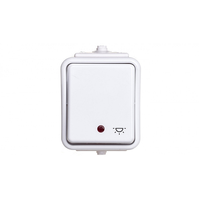 Cedar Przycisk hermetyczny IP44 światło z podświetleniem 10A biały IP44 WNt-102CS WNT102CS01